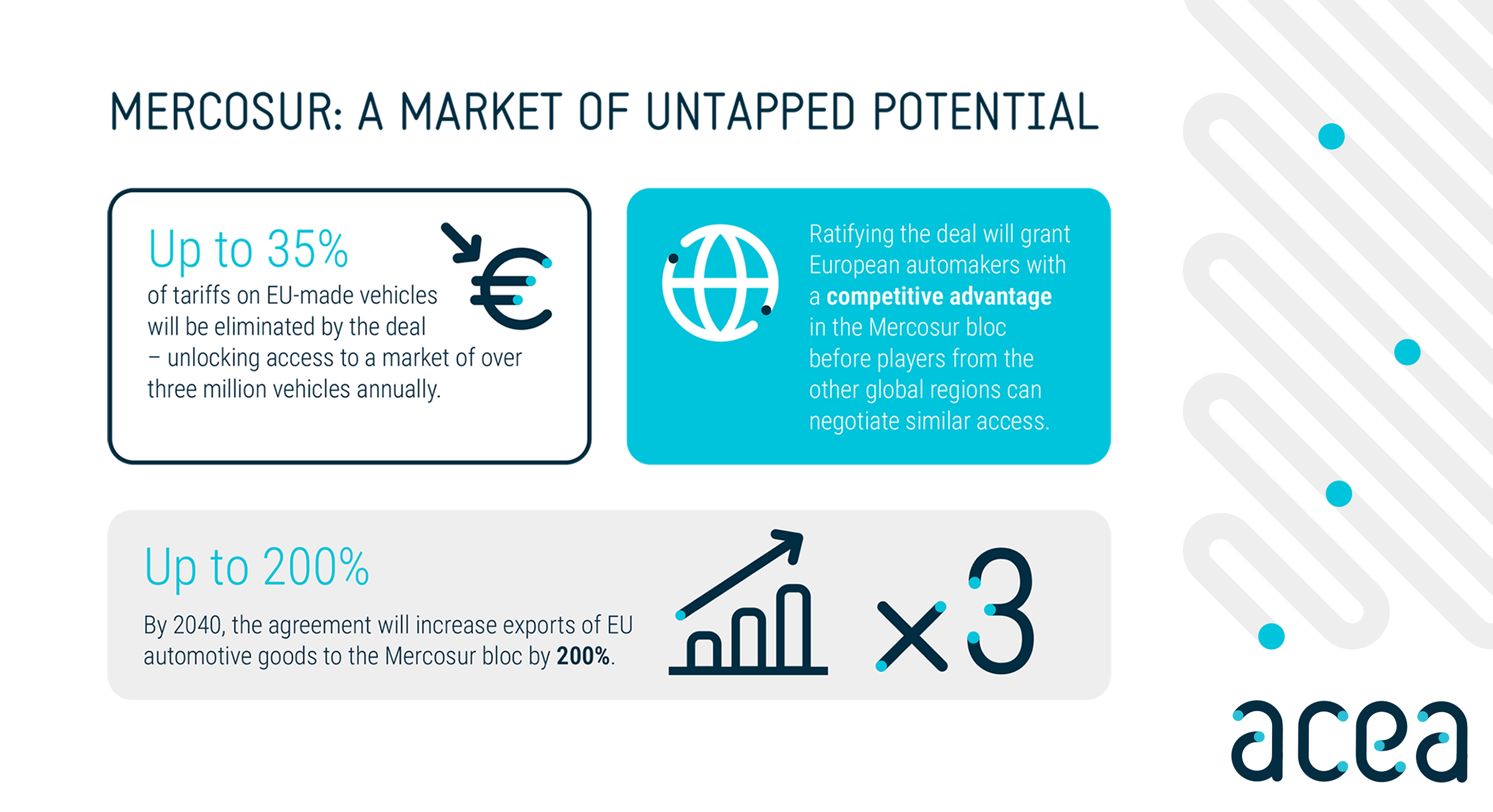The European Automobile Manufacturers’ Association (ACEA) calls on policymakers to endorse the EU-Mercosur Free Trade Agreement.