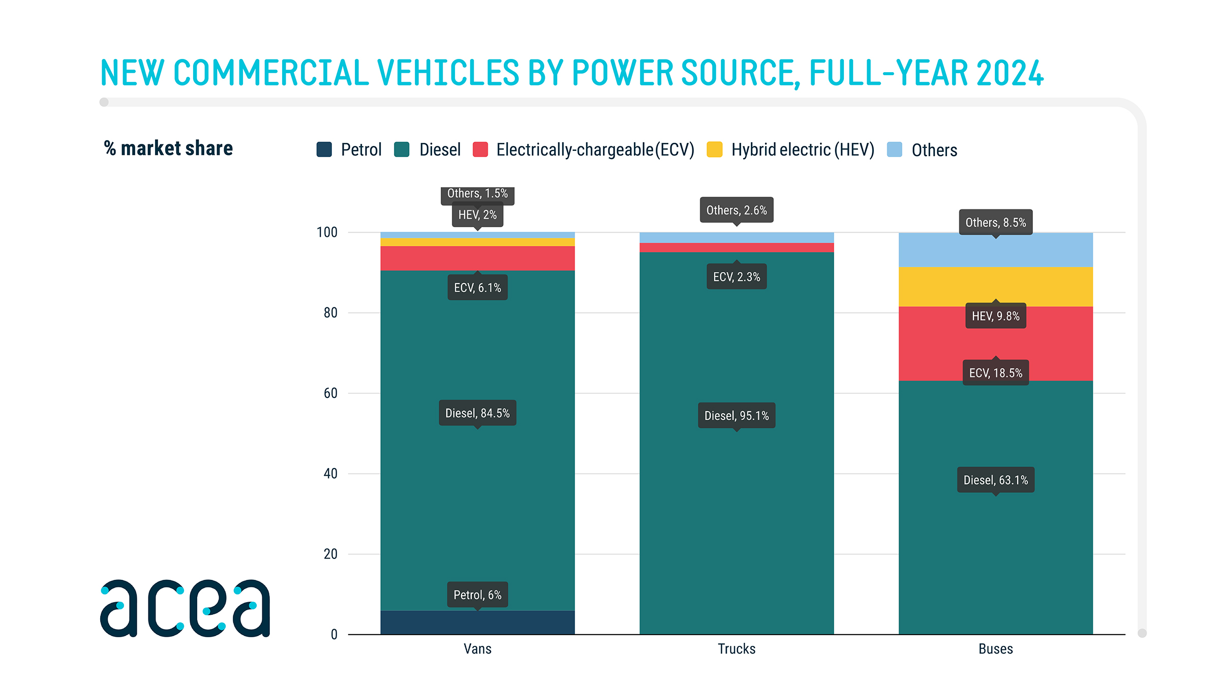 New commercial vehicle registrations: vans +8.3%, trucks -6.3%, buses +9.2% in 2024