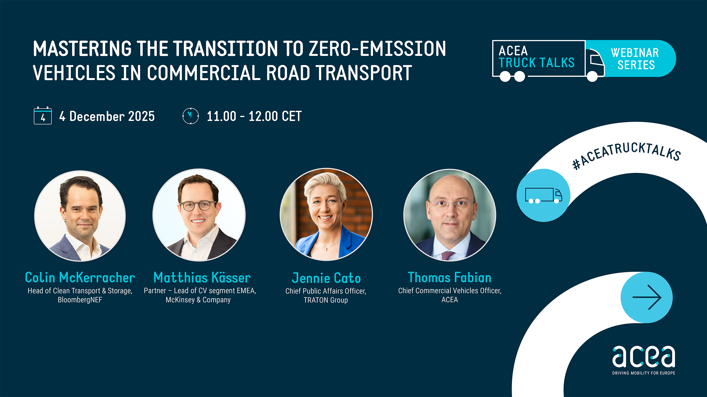 This #ACEATruckTalks webinar will explore how Europe can bridge its competitiveness and cost gaps to remain a global leader in zero-emission road transport. Experts from industry, policy, and finance will discuss how to strengthen enabling conditions, accelerate infrastructure rollout, and ensure long-term industrial resilience.