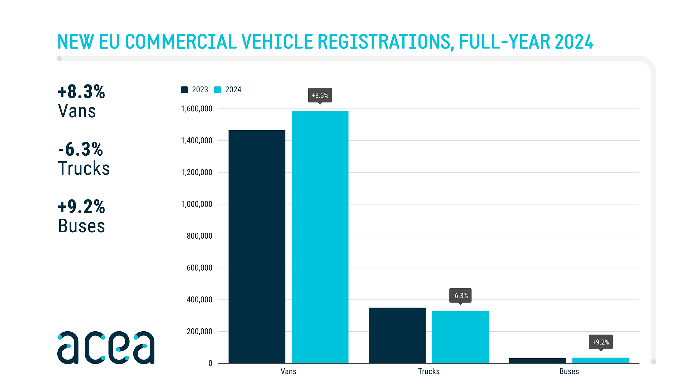 New commercial vehicle registrations: vans +8.3%, trucks -6.3%, buses +9.2% in 2024